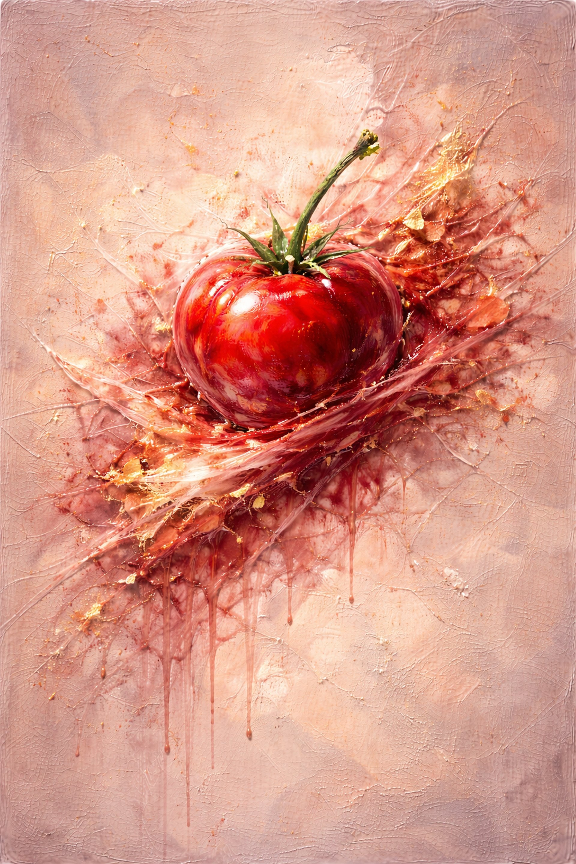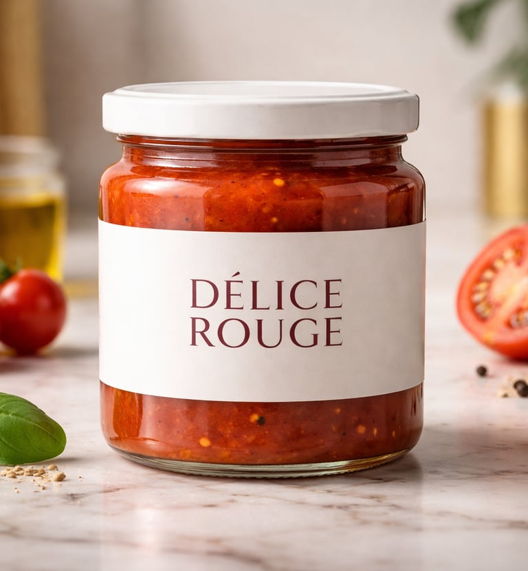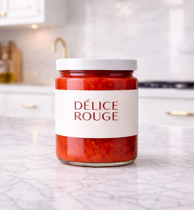 DÉLICE ROUGE naît de cette relation ancienne et assumée à la tomate, pensée comme une matière pleine, expressive et précieuse.